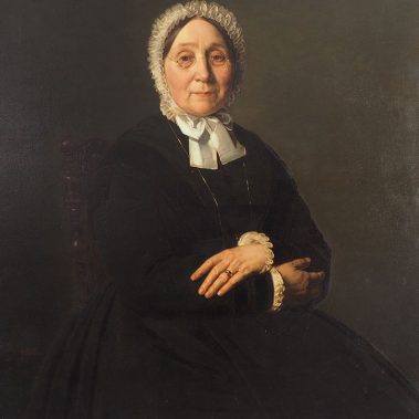 Rechts: Elisabeth Franziska Mauritia Engels, geb. van Haar (1797–1873), Ölgemälde von Laurenz Schäfer 1871 (Familie Hermann Engels, Engelskirchen | Foto: © Sabine Hermes – Restaurierung, Köln)