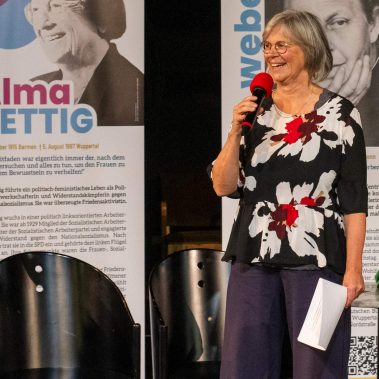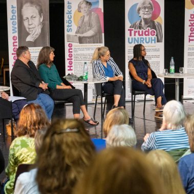 Am 8. September 2025 kamen etwa 100 Frauen und Männer ins Pina Bausch Zentrum Under Construction ins ehemalige Schauspielhaus, um sich über die Inhalte und die Bedeutung der UN-Frauenrechtskonvention (CEDAW) zu informieren und 40 Jahre Ratifizierung durch Deutschland zu feiern. Motto der Veranstaltung, die von der Wupperfrau Dr. Dagmar Hertle initiiert und in Kooperation mit dem Katholischen Bildungswerk Wuppertal, Remscheid, Solingen sowie der Gleichstellungsstelle der Stadt Wuppertal durchgeführt wurde, war „Frauen in Wuppertal, wie geht´s euch eigentlich?“. Denn die UN-Frauenrechtskonvention soll ja nicht nur auf dem Papier stehen, sondern auch vor Ort umgesetzt werden. Inwieweit dies in Wuppertal gelungen ist und wo es noch hakt, das wurde mit fünf Podiumsgästinnen diskutiert: Roswitha Bocklage, Leiterin der Stabsstelle Gleichstellung und Antidiskriminierung, Bettina Tyndale vom Verein Frauen helfen Frauen e.V. und dem Frauenhaus, Dr. Christelle Beti, Frauenärztin und im Vorstand des Deutsch-Kongolesischen Instituts und bei ASHA Congo e.V. sowie Dr. Rebekah Rota, Intendantin der Wuppertaler Oper und Bettina Milz, Leiterin der Vorlaufphase Pina Bausch Zentrum. Durch den Abend und durch das Gespräch führte Dr. Dagmar Hertle.