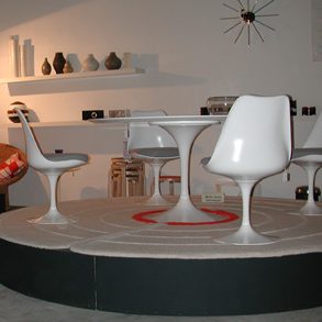Teppich White Flower mit dem Tulpentisch mit Tulpenstühlen von Eero Saarinen, im Grassimuseum für angewandte Kunst in Leipzig, © JR50674 | Wikimedia